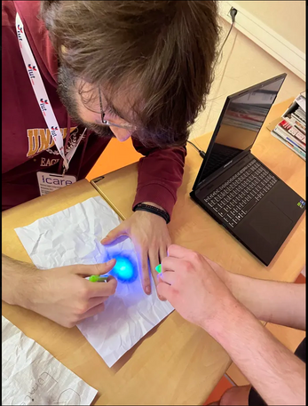 Interface/numérique : Nous avons choisi de créer de fausses interfaces Figma de Windows 11 pour simuler des faux bureaux d'ordinateur. Bien que cela nous permettait de faire une narration originale, c'était difficile à mettre en place nous avons eu quelques bugs. Notre module M5GO a également eu des soucis lié à la batterie que nous avons eu du mal à anticiper.